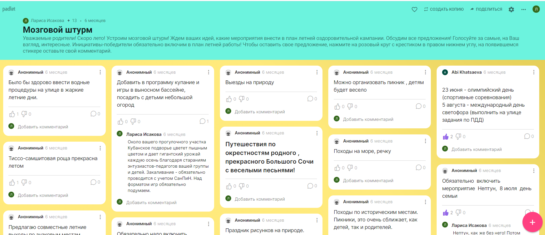 - Список всех падлетов, которые вы создали, посетили, лайкнули и внесли в [Padlets] и